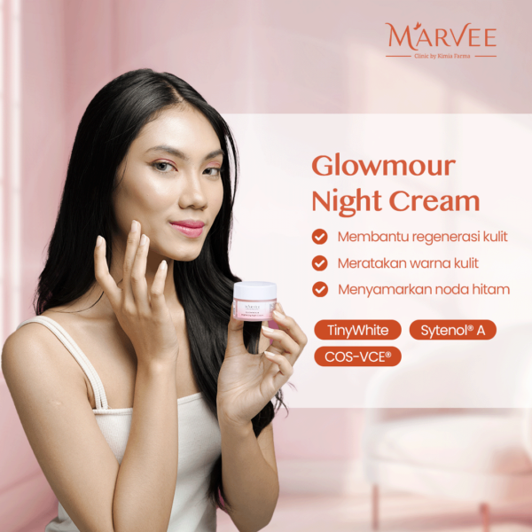 Gunakan rangkaian skincare Glowmour (facial wash, toner, serum, dan night cream) untuk membantu mencerahkan kulit secara maksimal.