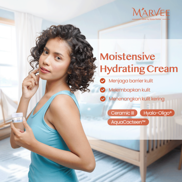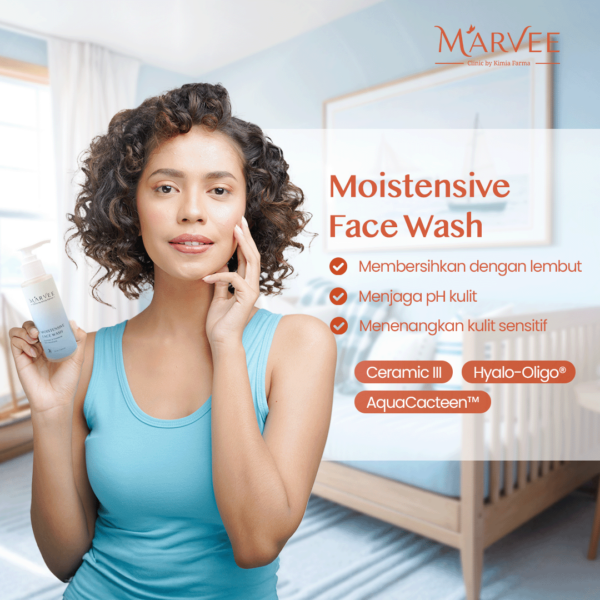 Gunakan rangkaian skincare Moistensive (facial wash, toner, day cream, dan night cream) untuk membantu melembabkan kulit dan memperkuat skin barrier secara maksimal.