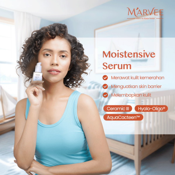 Gunakan rangkaian skincare Moistensive (facial wash, serum, day cream, dan night cream) untuk membantu melembabkan kulit dan memperkuat skin barrier secara maksimal.